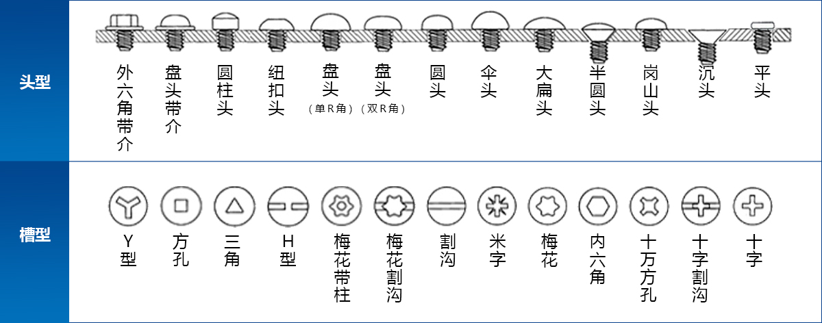 不同头型和槽型