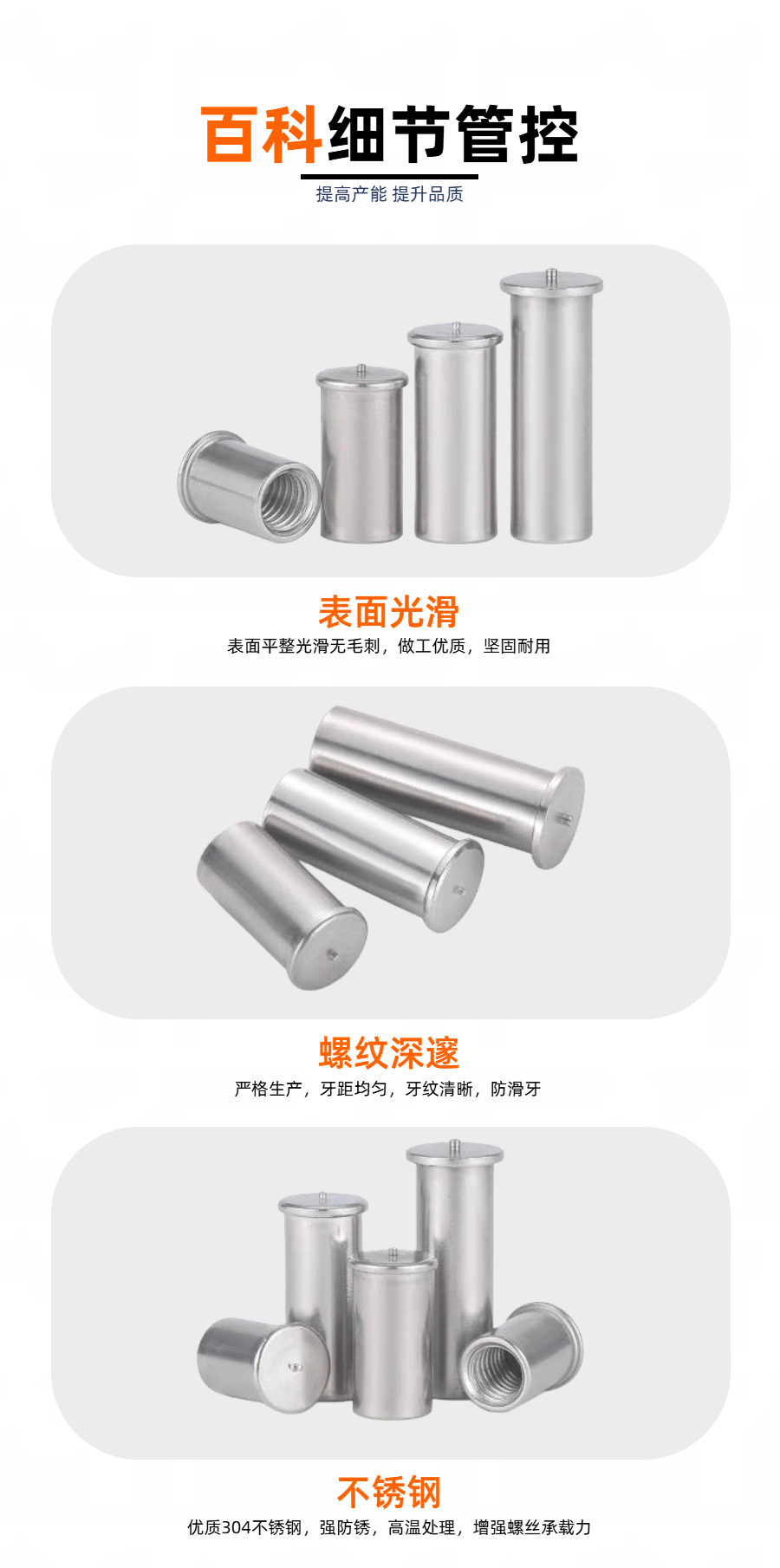 百科五金专注于生产不锈钢点焊螺母柱,专为金属板材提供内螺纹连接,产品规格齐全,支持非标定制,如有需求,欢迎来电咨询。
